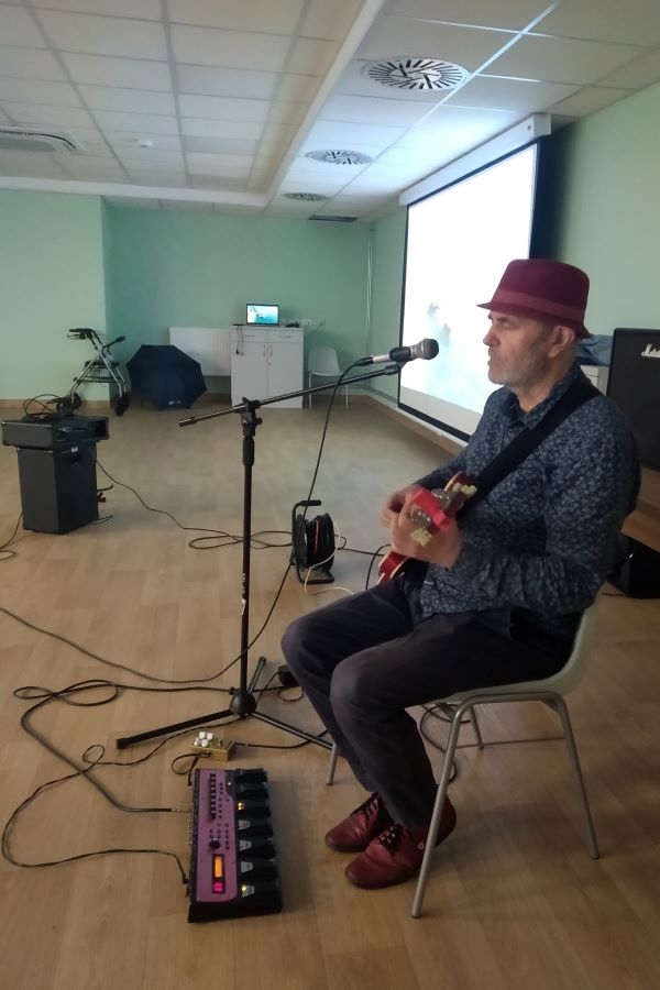 Kolejny już raz spotkał się z nami fantastyczny muzyk Ryszard Styła. Krakowski gitarzysta jest znaną postacią w świecie jazzu. Grywał z Jarosławem Śmietaną, Jorgosem Skoliasem, Markiem Bałatą, Krzysztofem Ścierańskim, Kazimierzem Jonkiszem i wieloma innymi polskimi i zagranicznymi wykonawcami. W naszym Domu zagrał kilka starszych i parę nowszych utworów. Ten koncert był nie tylko spotkaniem z muzyką, ale także opowieścią o człowieku. Muzyk opowiadał anegdoty, z których każda miała jakąś cenną pointę. Dygresje i przypowieści mówiły o muzyce, pokorze, wybaczaniu, miłości, umiejętności śmiania się z samego siebie i o trudnej sztuce życia. Wszyscy byliśmy oczarowani zarówno dźwiękami gitary, jak i postacią samego artysty. Dziękujemy za wspaniałą podróż w głąb siebie, za przypomnienie, co tak naprawdę jest ważne w życiu i mamy nadzieję, że wkrótce znowu się spotkamy.