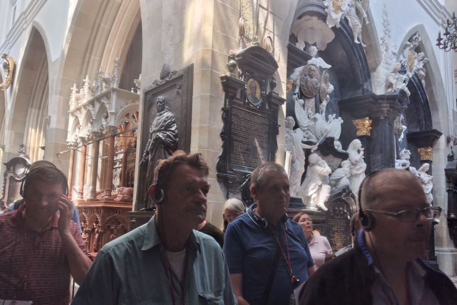W dniu 20.06.2023r. po śniadaniu z butelką wody i nakryciem głowy w jeden z pierwszych prawdziwie letnich dni udaliśmy się do katedry wawelskiej. Na miejsce dotarliśmy przed południem. Nasi podopieczni po raz pierwszy mieli możliwość zwiedzania korzystając z systemu audio, dzięki któremu dowiedzieli się wielu interesujących faktów z historii Polski i Kościoła.