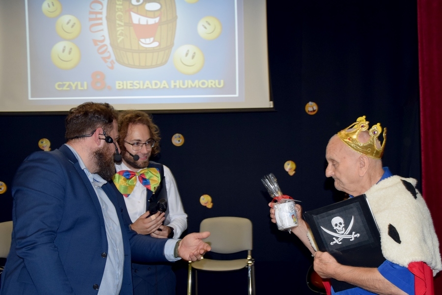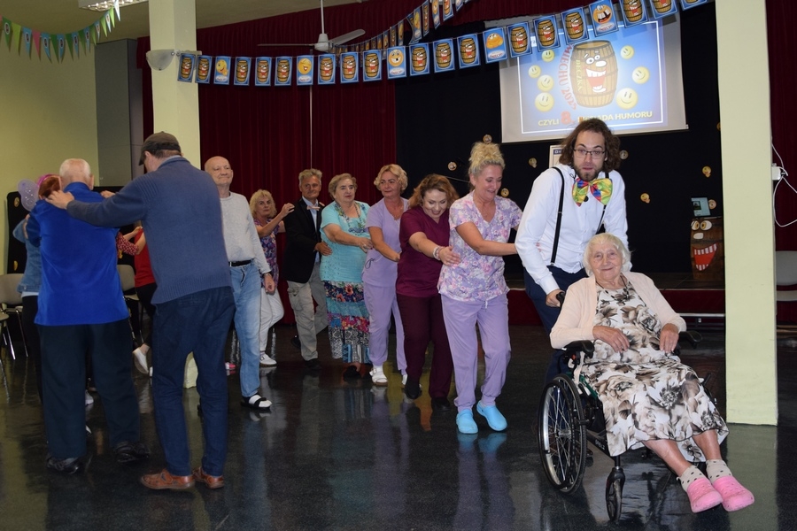 Za nami kolejna 8. „Beczka śmiechu czyli biesiada humoru”. Tym razem wraz z Mieszkańcami zaproszonych Domów bawili się Zastępca Dyrektor MOPS Pani Marzena Samek oraz dyrektorzy krakowskich Domów Pomocy Społecznej. Rozpoczęliśmy od powitania, którego dokonał p.o. Dyrektora Pan Sebastian.