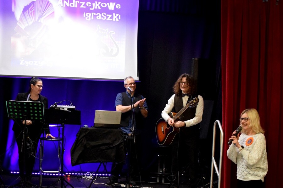 Podczas „Andrzejek” nie zapominamy , ma się rozumieć o Andrzejach, którym śpiewamy okolicznościowy salut, wręczamy coś słodkiego i wraz z nimi rozpoczynamy tanecznie coroczny bal. O program balu, jak co roku zadbali nasi instruktorzy od kultury Gloria i Janusz. Dziękujemy wszystkim za wspólną zabawę i do kolejnego tanecznego spotkania!